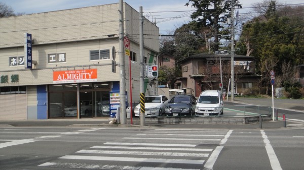 | お車でお越しの方(東名高速) | 東名青葉インターを下りて右、横浜上麻生道路を直進。貝の坂を左、梅田橋を左折、緑産業道路沿い。東方町の交差点を上記のように向かう |